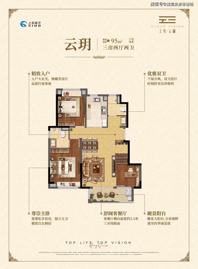 约95㎡三房两厅两卫,做到了三开间朝南+瞰景大阳台+主卧套房设计+南北通透+卫生间干湿分离,该户型得房率和空间利用率都非常高。⫸⫸⫸上实云端售楼处电话: 【已认证】⫷⫷⫷